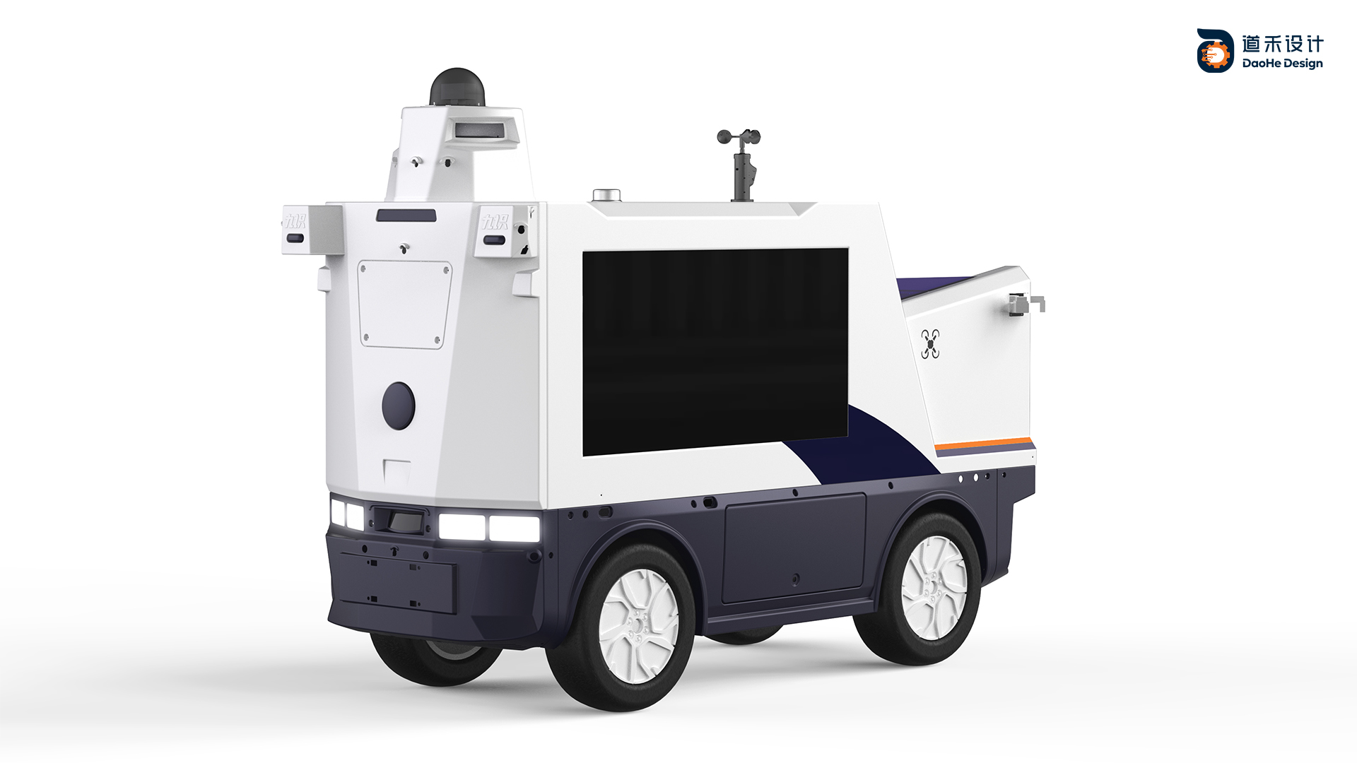 切割装甲板 以斜线装甲板切割为视觉核心,融合军事装备的防护性与警用设备的敏捷性,打造兼具战术威慑力与实战功能性的警用无人车。