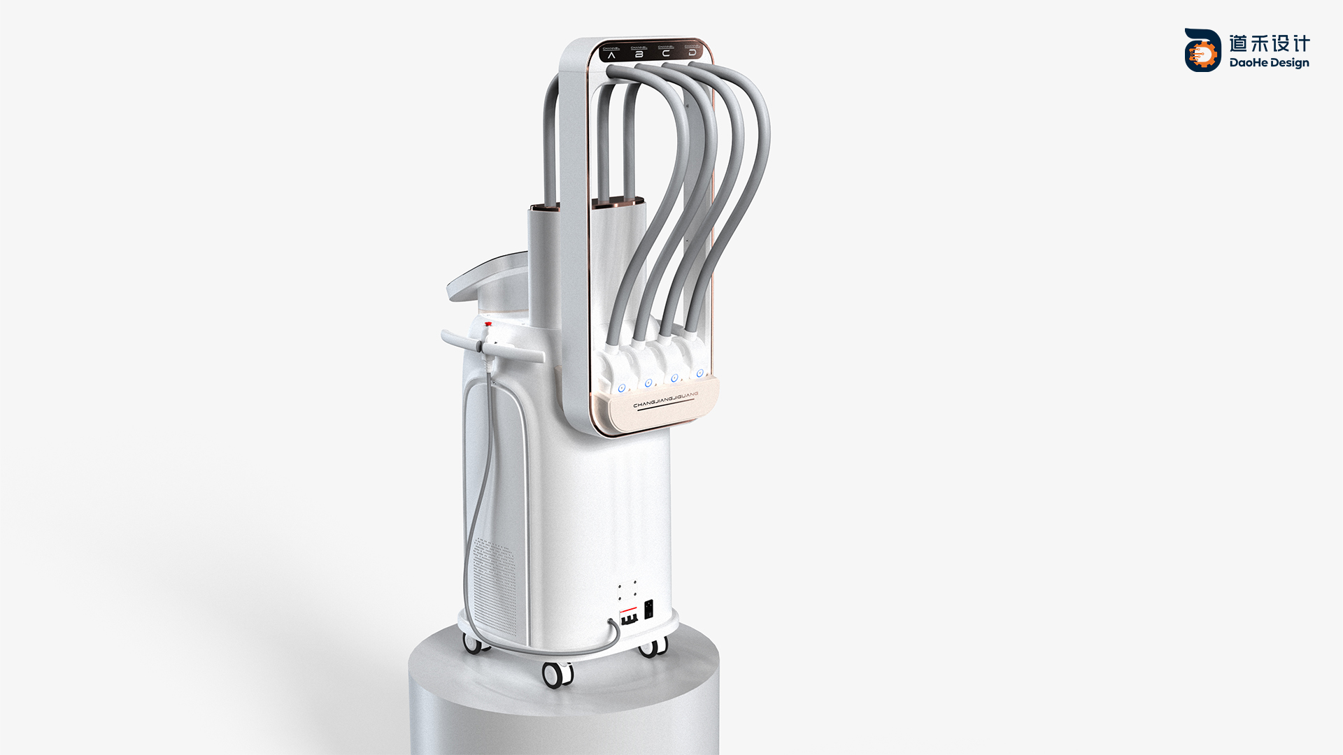 定义一款女性感与层次感相融合的设备,层次的相合,与正面体块的分割,使其仪器更加纤薄,从设计语言上达到,塑形概念的表达。